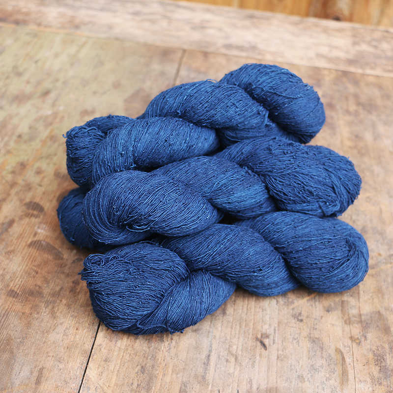 倚山人半手捻織布藍染紗棉線indigo草木染藍色刺繡花diy手編單股